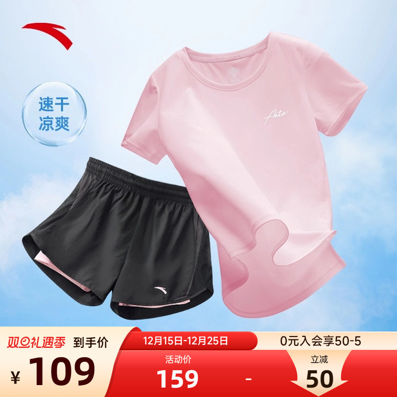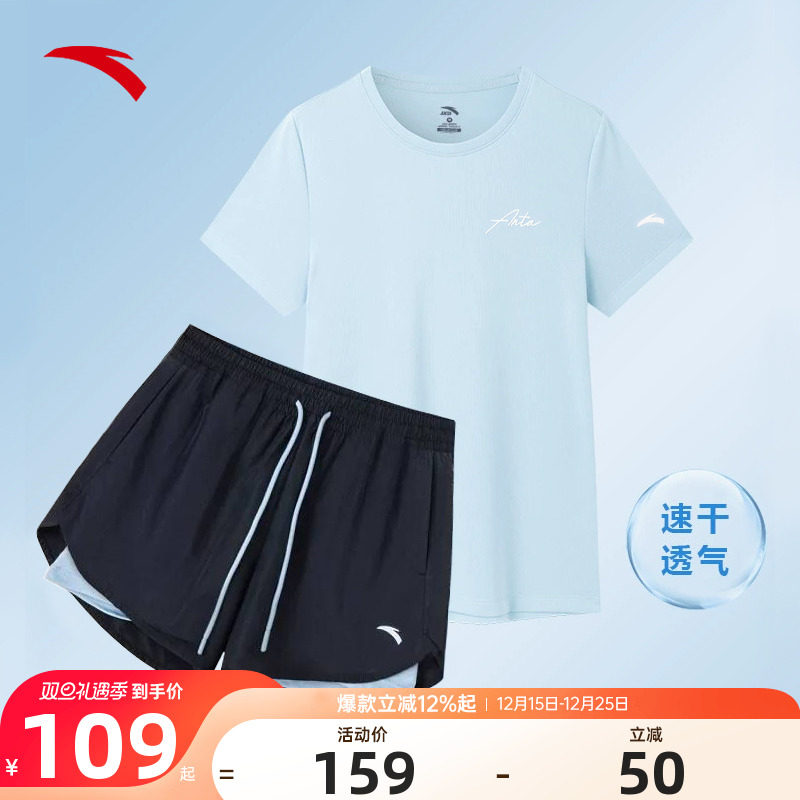 安踏速干套装丨运动套装女士夏季体测健身短袖透气跑步短裤休闲套