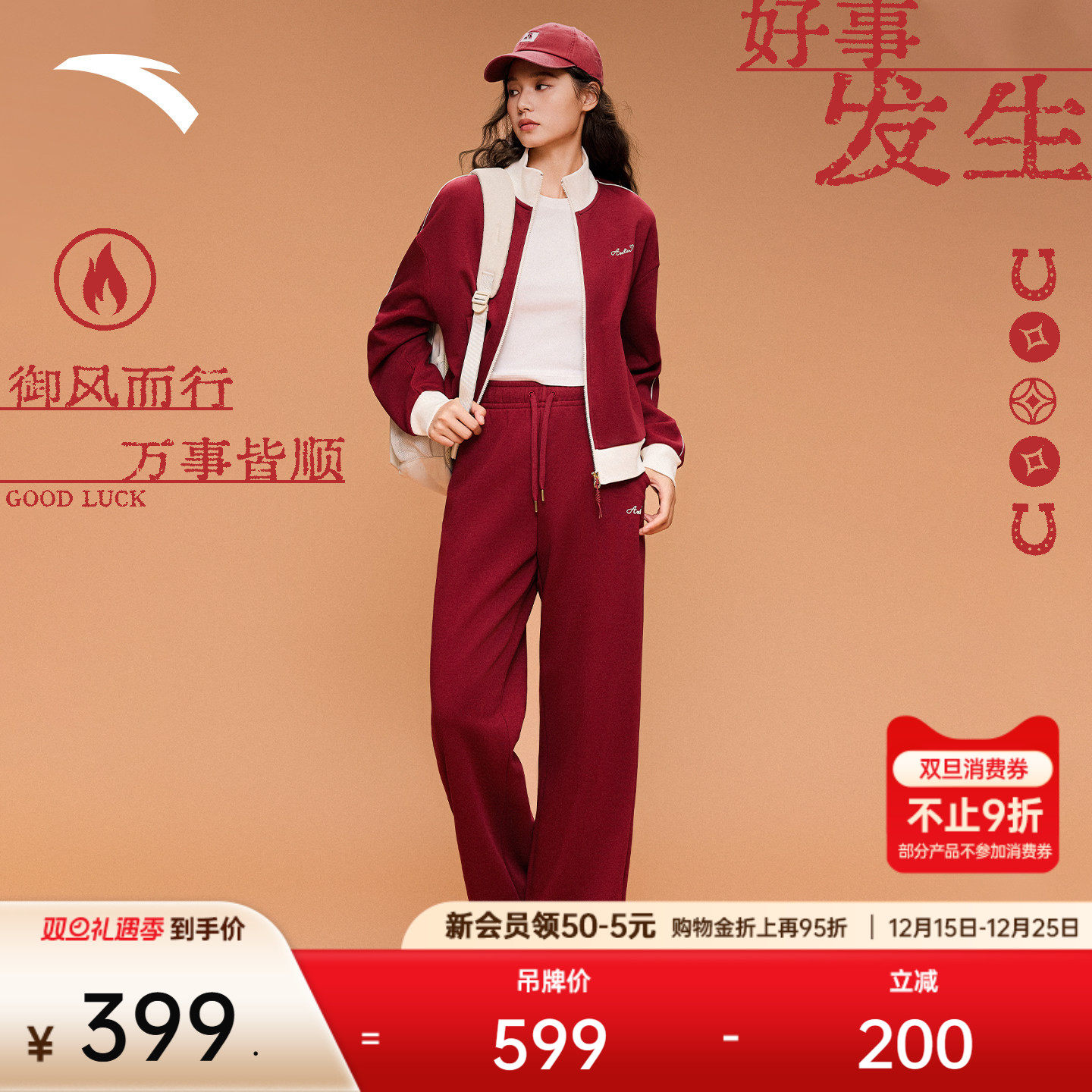 安踏易打理套装丨立领针织外套长裤女款冬季加绒运动上衣直筒裤子