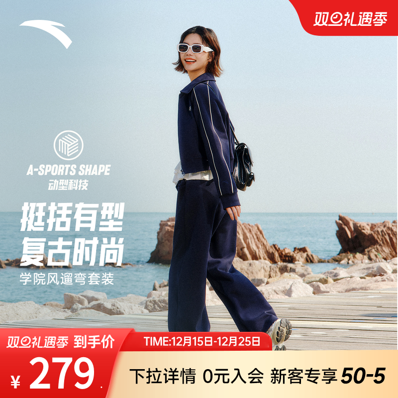 安踏运动套装女2025冬季新款美式开衫立领运动服弯刀裤 162538704