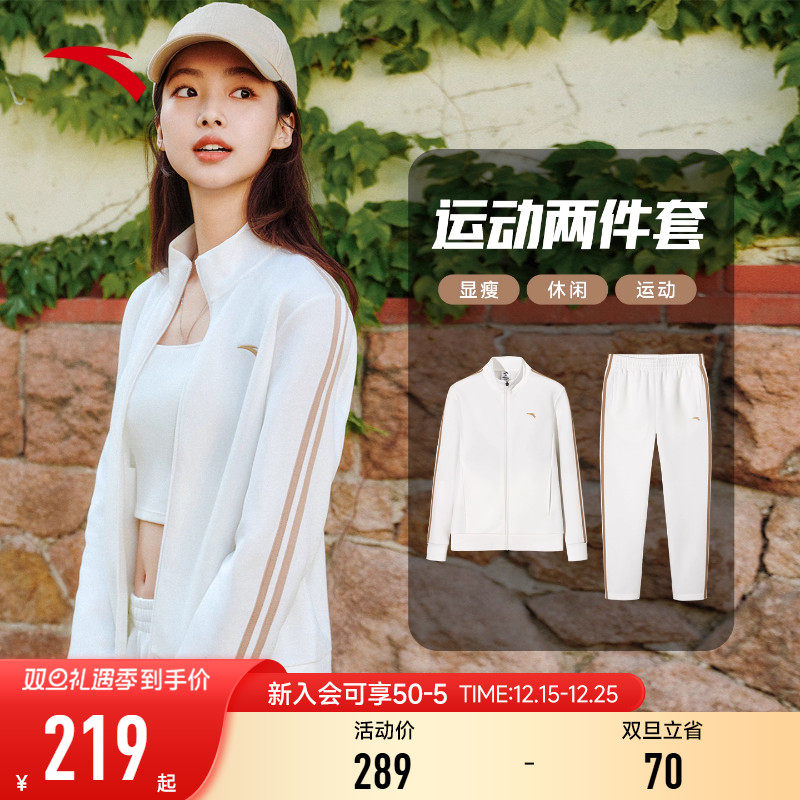 安踏运动套装女2025新款开衫外套卫衣卫裤跑步休闲两件套运动服女