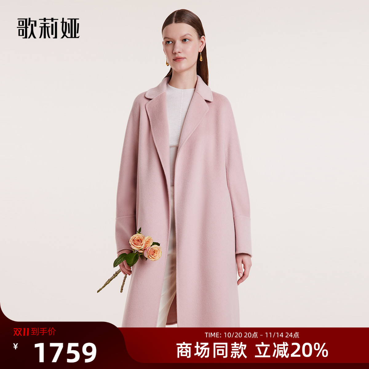 歌莉娅冬季新款粉色优雅羊绒羊毛大衣中长款毛呢外套女1BNL6N080