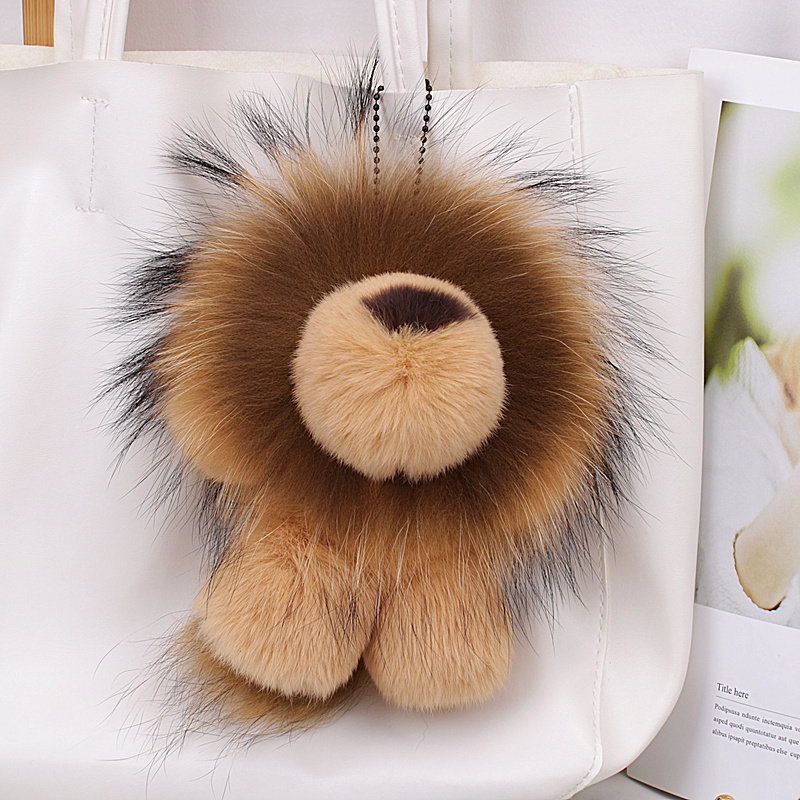 韩国ins可爱真獭兔毛小狮子汽车钥匙扣挂件毛绒公仔包包挂饰礼物