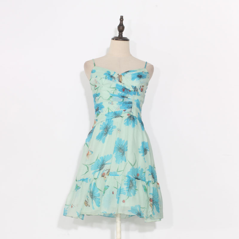 杭州正品大牌真丝欧根纱桑蚕丝连衣裙吊带裙印花夏季款轻奢高级感
