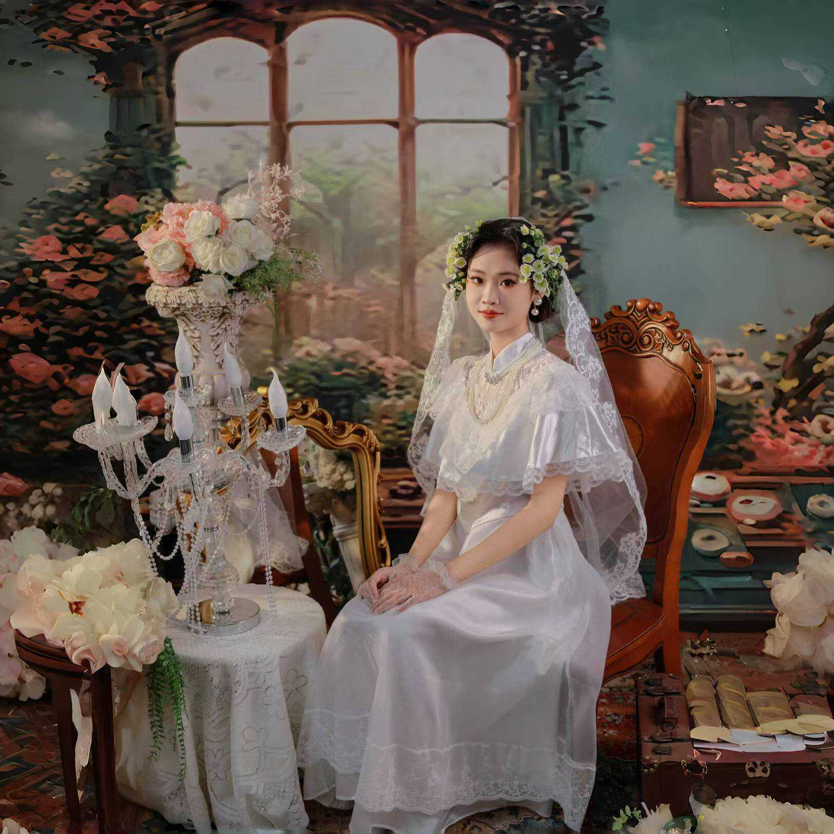留洋千金法式裙女欧根纱白秀珠复古优雅轻婚上海名媛贵气连衣裙子
