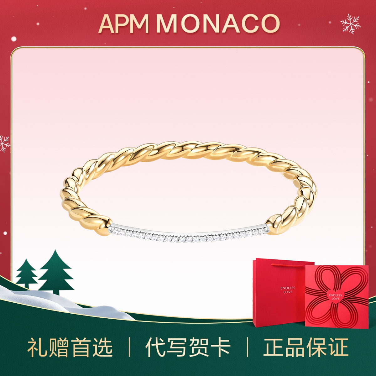 [杨紫同款]APM Monaco Enlacé手镯银白密镶交织手饰新品圣诞礼物