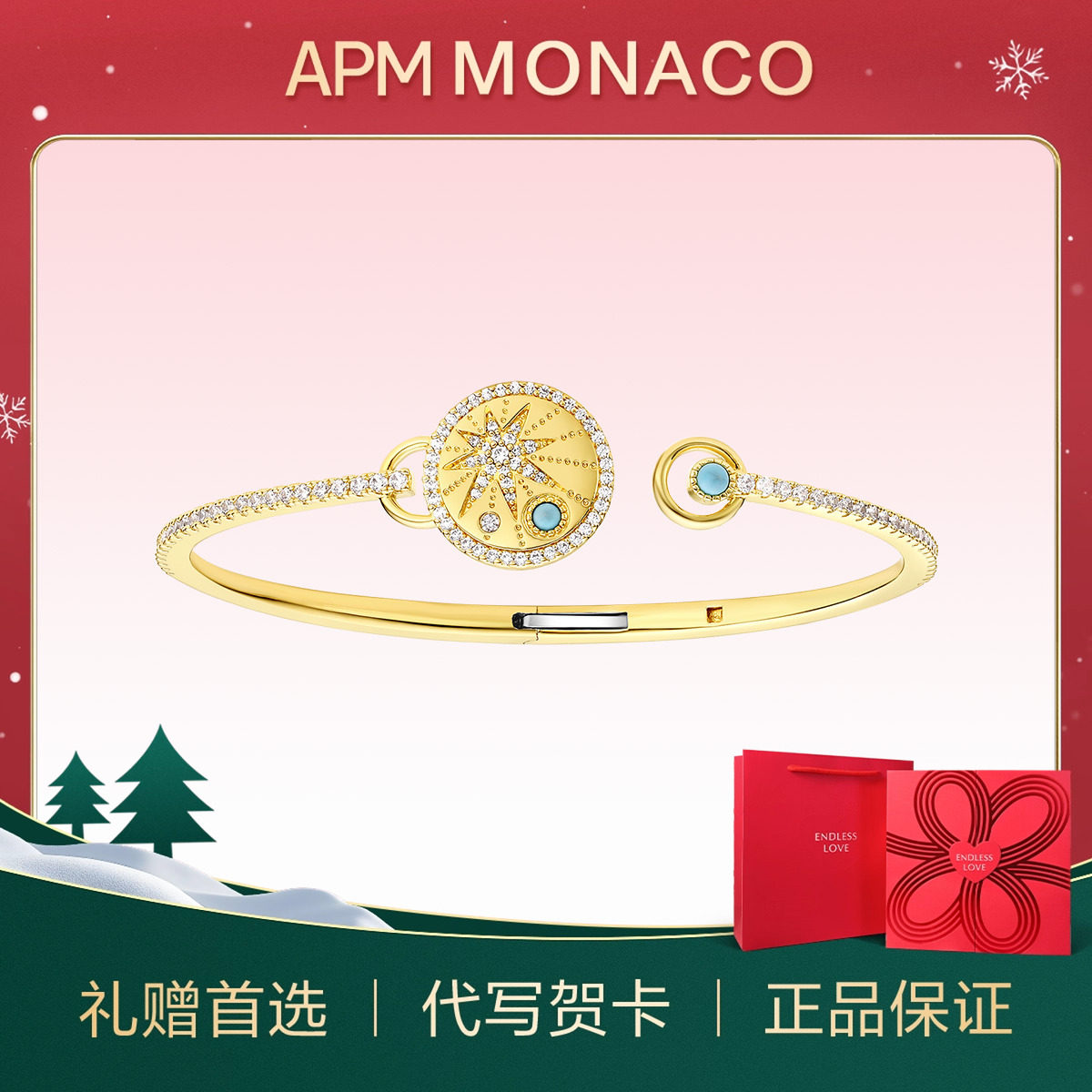 APM Monaco浪漫开口手镯女闺蜜银手链时尚个性手饰生日圣诞礼物