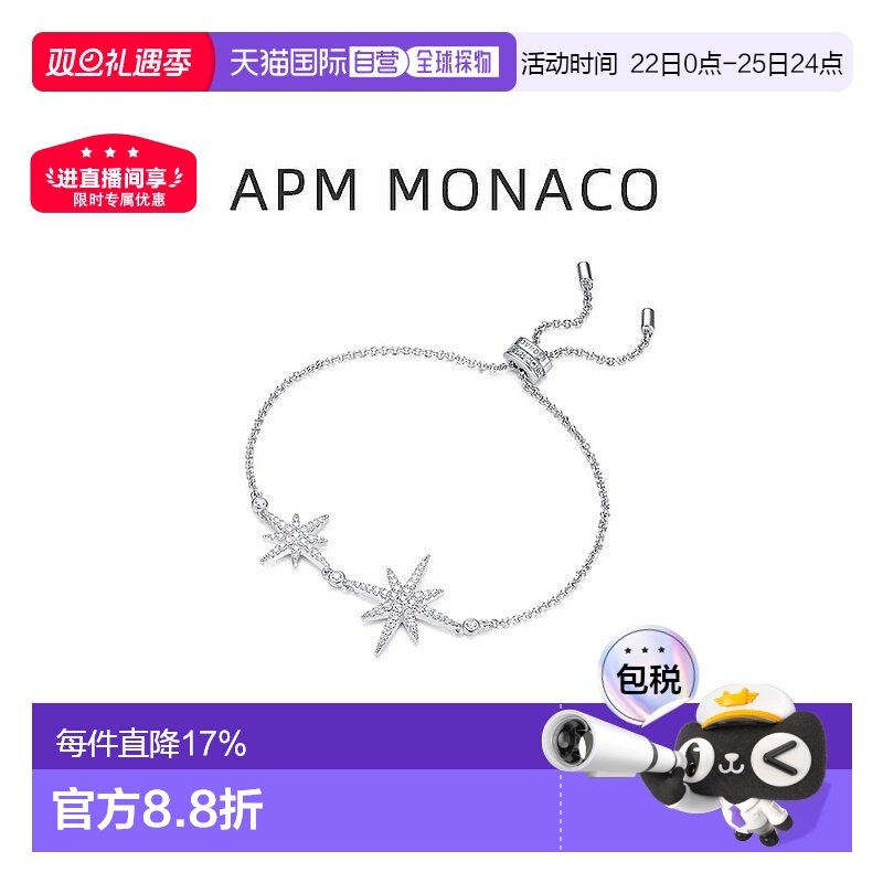 自营APM MONACO正品手链女纯银镶晶钻双流星手镯礼物银手链饰品