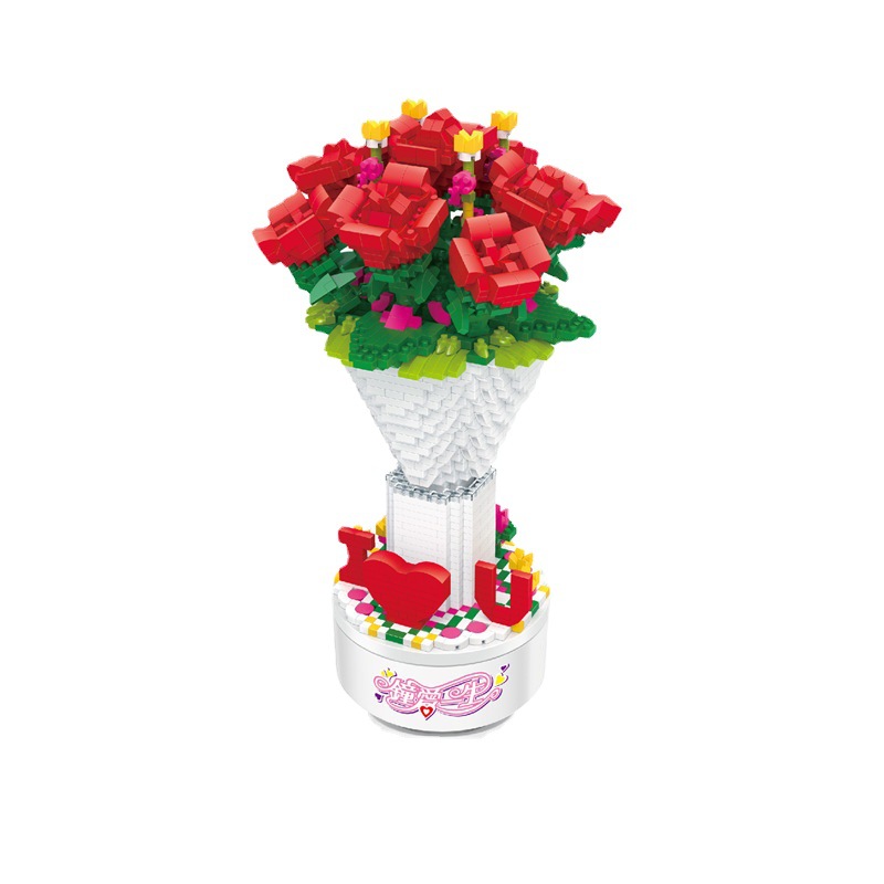 厂家厂家新款微型积木颗粒积木diy795玫瑰花音乐盒系列代发