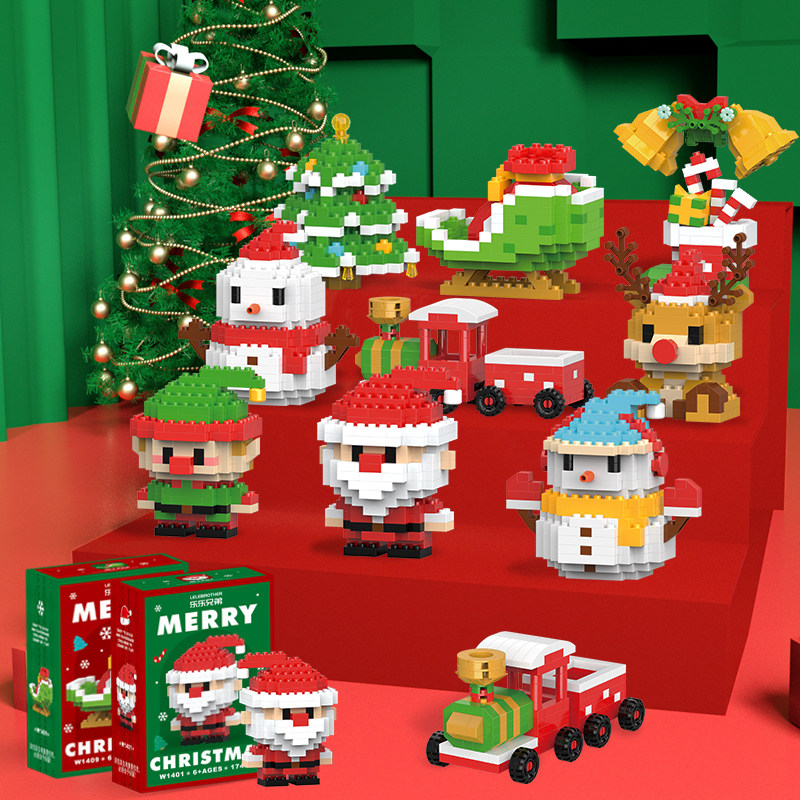 圣诞节微型拼装积木乐乐圣诞老人高难度益智玩具雪人火车学生礼物