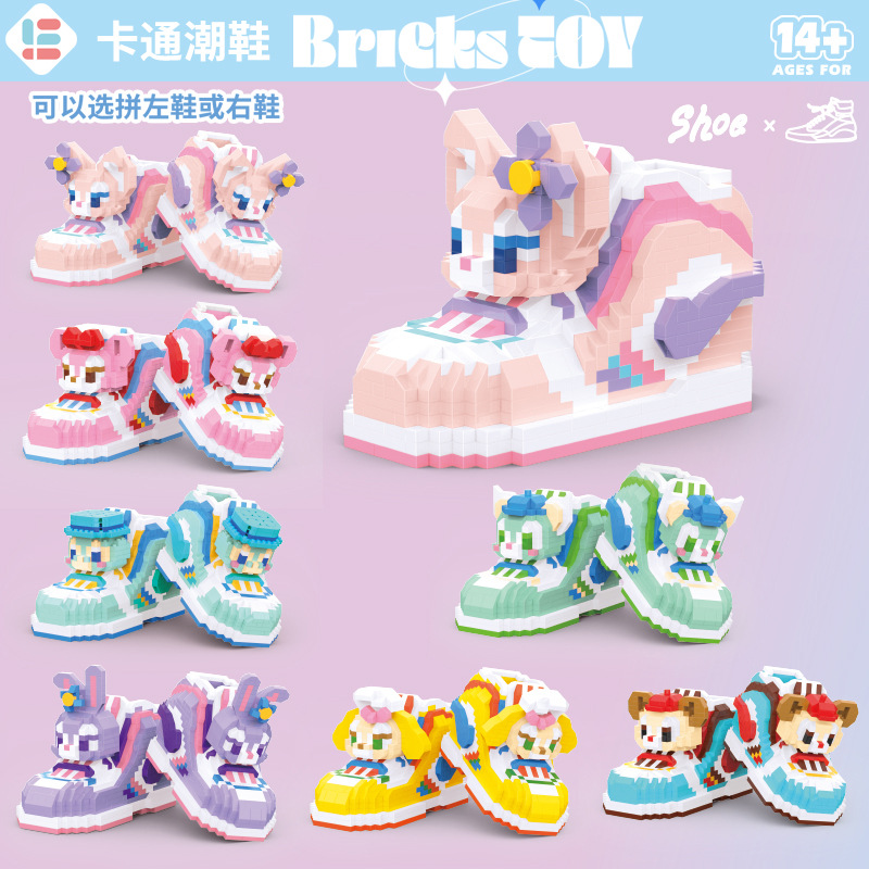幼儿园宝宝益智早教拼搭小颗粒微型积木潮鞋卡通公仔拼装塑料玩具