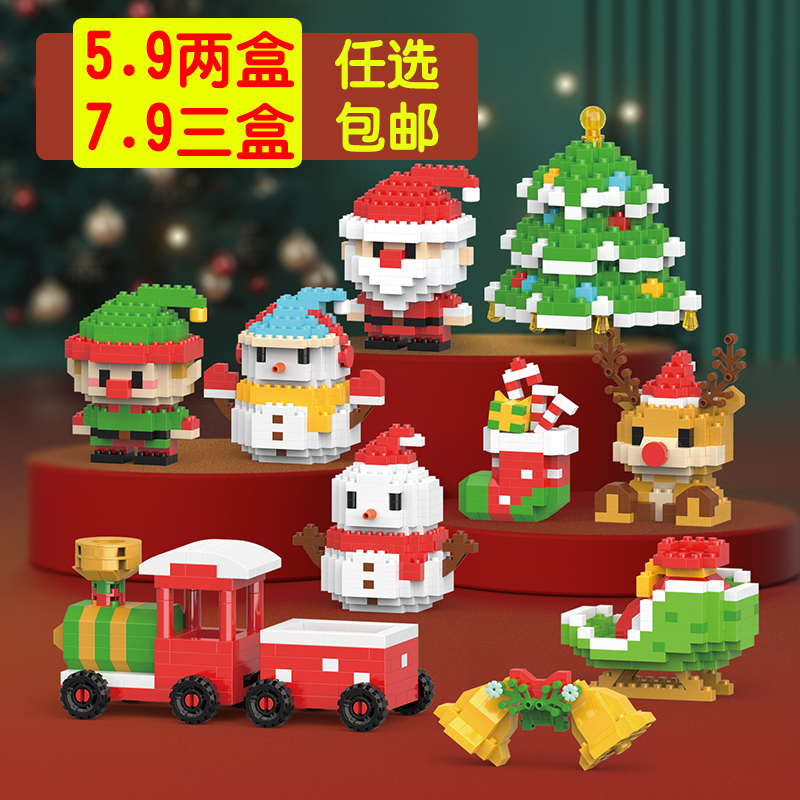 圣诞节礼物微型小颗粒积木男女孩子益智拼装玩具活动奖品可爱摆件