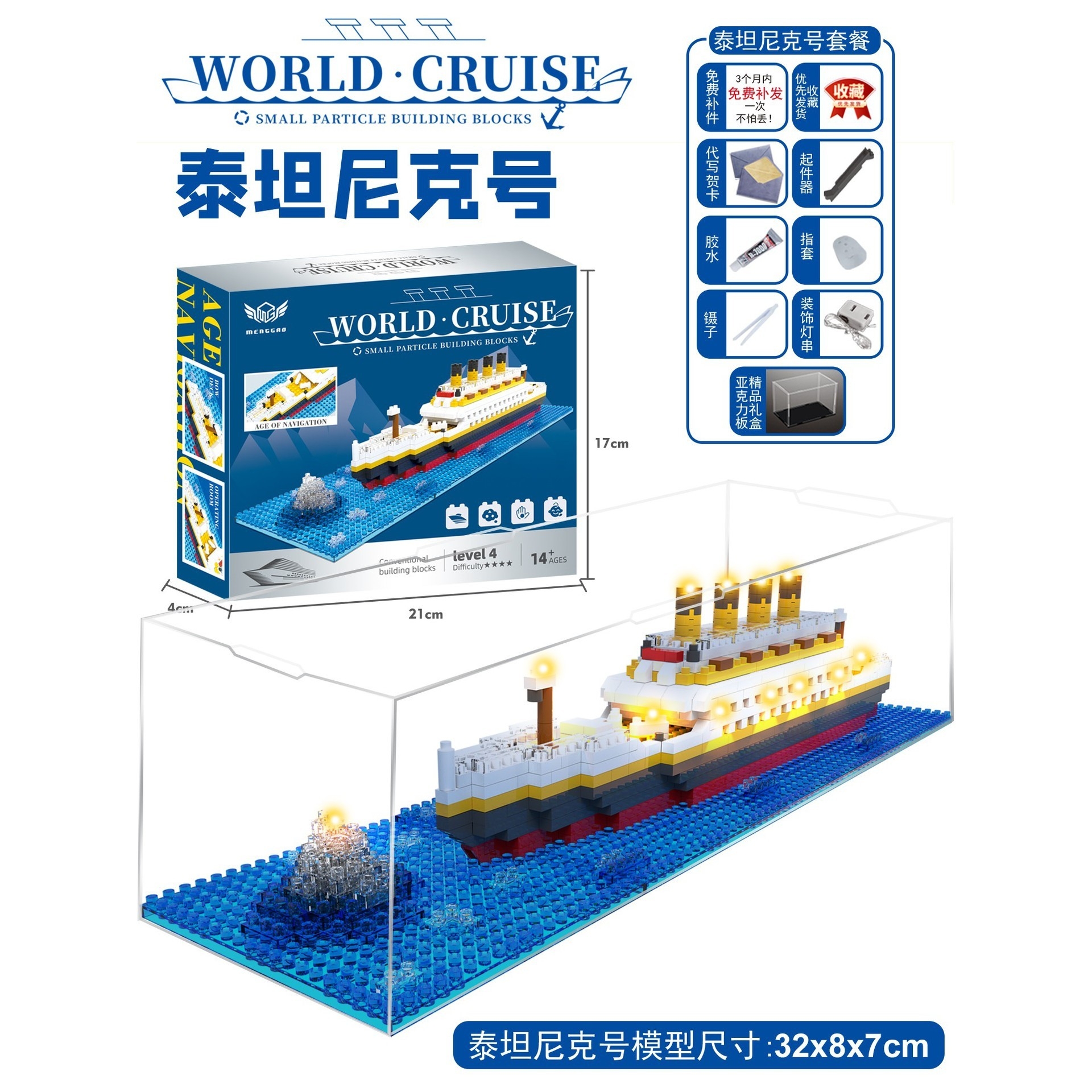 泰坦尼克号微型积木儿童益智高难度邮轮摆件拼插类男女孩玩具gd81