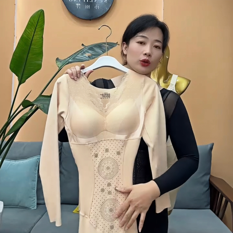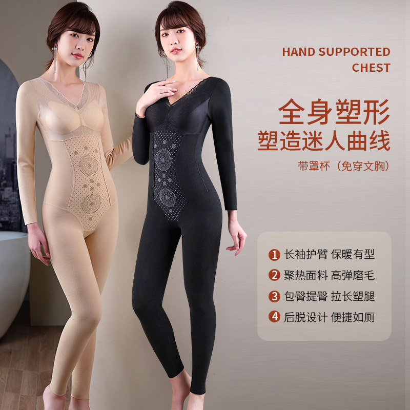 德绒保暖连体塑身衣带杯罩免穿文胸后脱式内搭收腹保暖套装一体裤