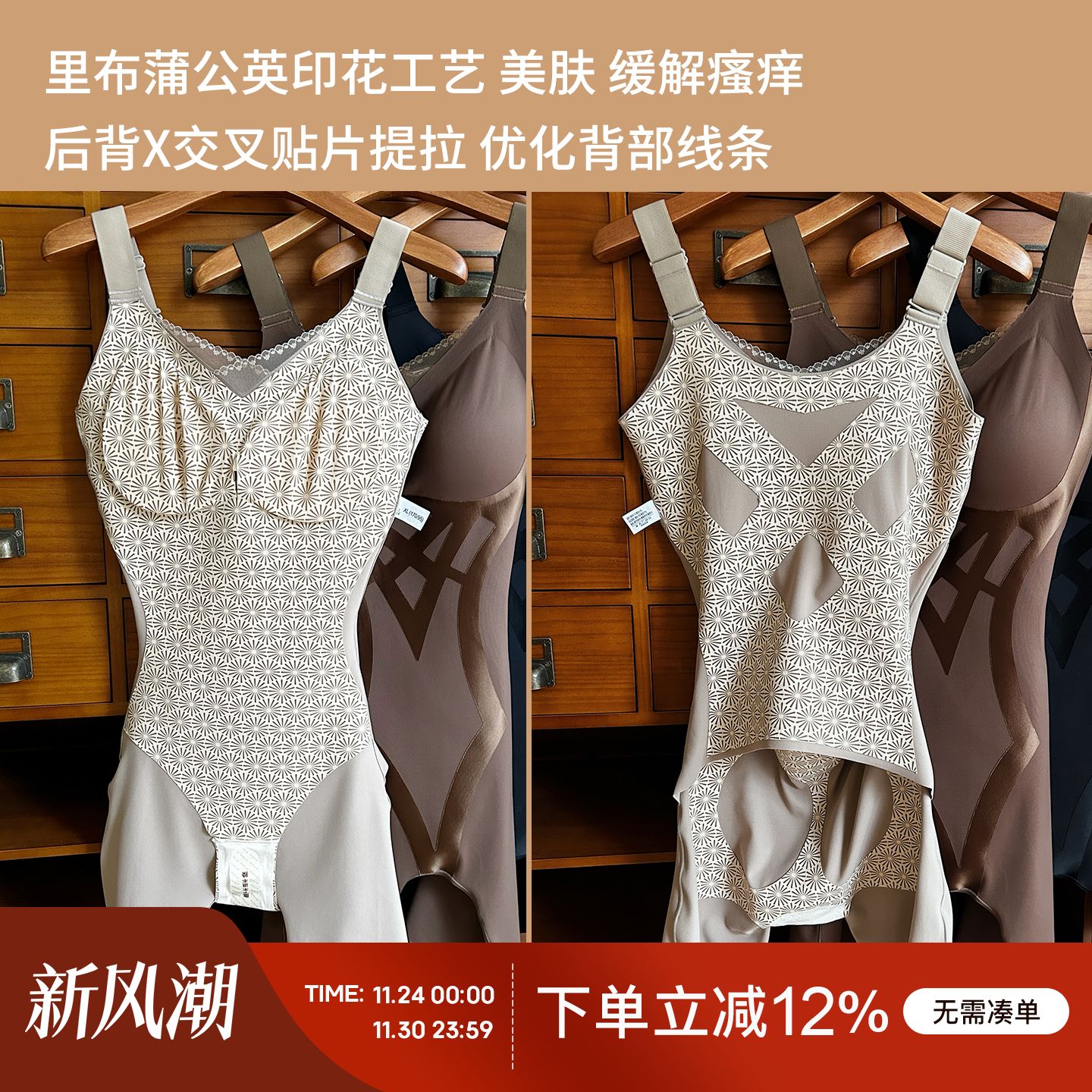 塑身衣新型无痕后脱式连体女束腰收腹美体塑形产后瘦身内衣提臀薄