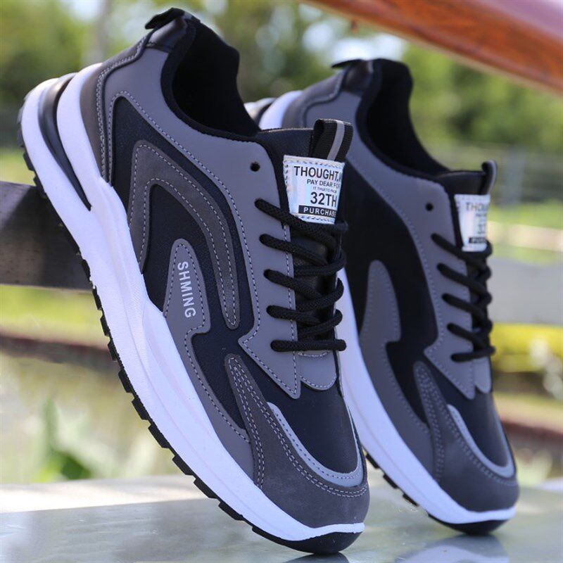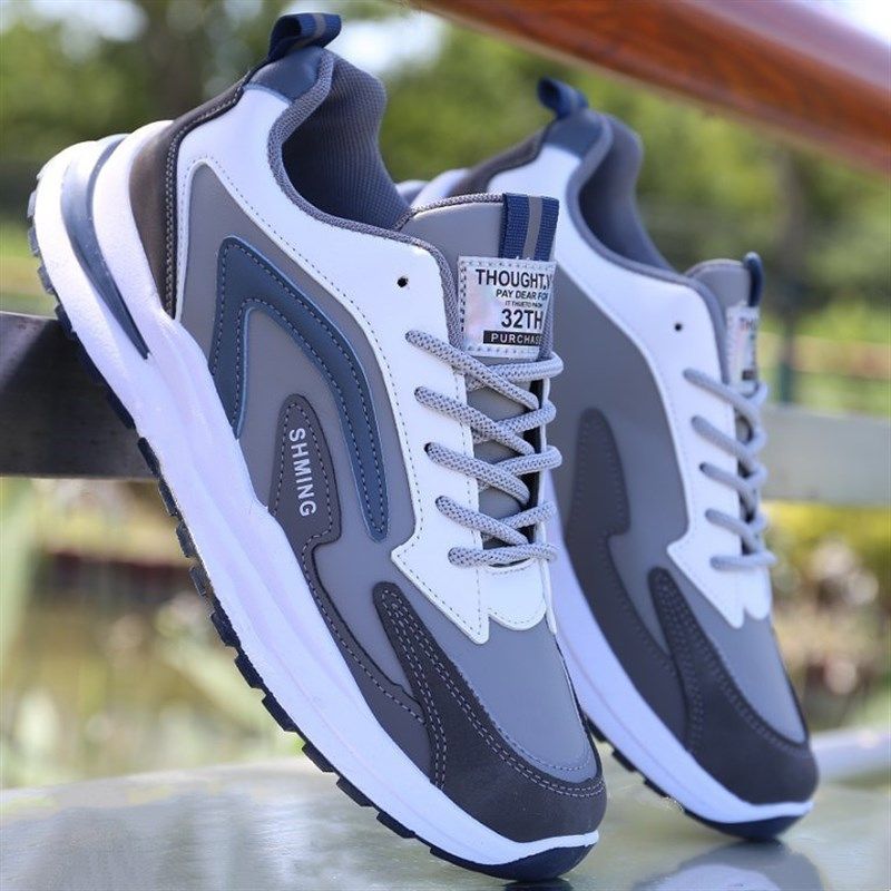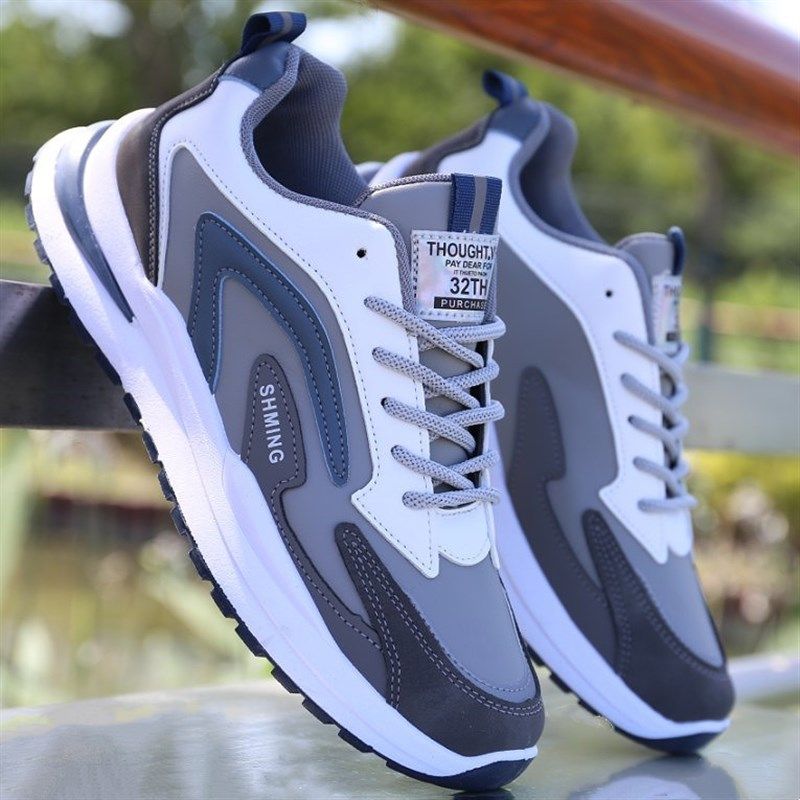 男鞋百搭秋冬季防水皮面运动鞋韩版潮流休闲软底防滑男士跑步鞋子