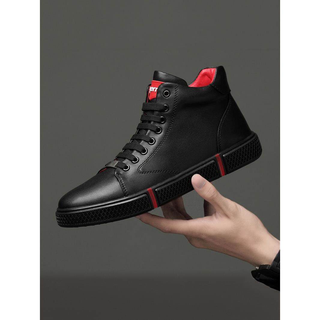 秋冬季鞋子男2024新款高帮男士皮鞋真皮黑色韩版潮流百搭休闲鞋