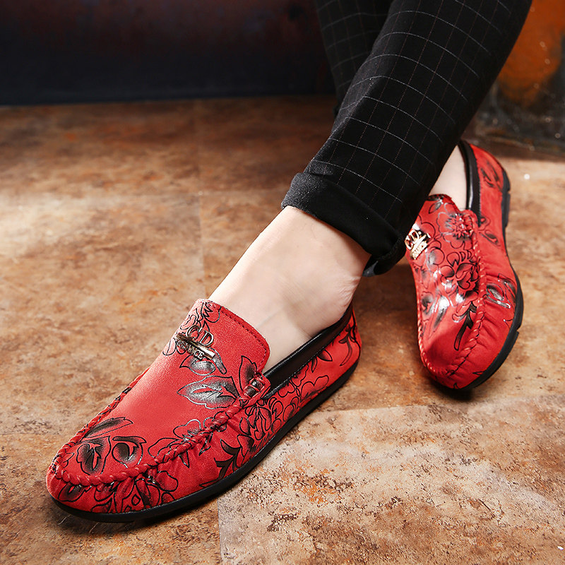2023秋季男潮流豆豆鞋韩版个性百搭休闲皮鞋冬季新款红色懒人鞋子