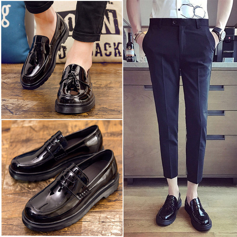 冬季小皮鞋男韩版潮流黑色百搭休闲鞋子男士英伦懒人一脚蹬豆豆鞋