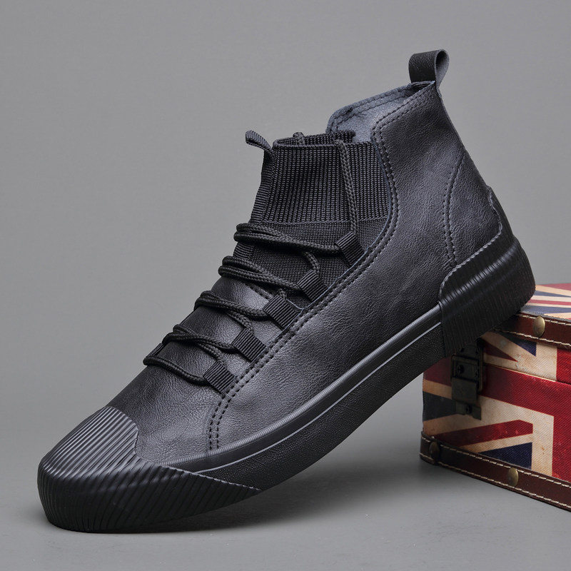 高帮鞋男冬季新款休闲板鞋真皮韩版潮流百搭潮牌男士潮鞋网红鞋子