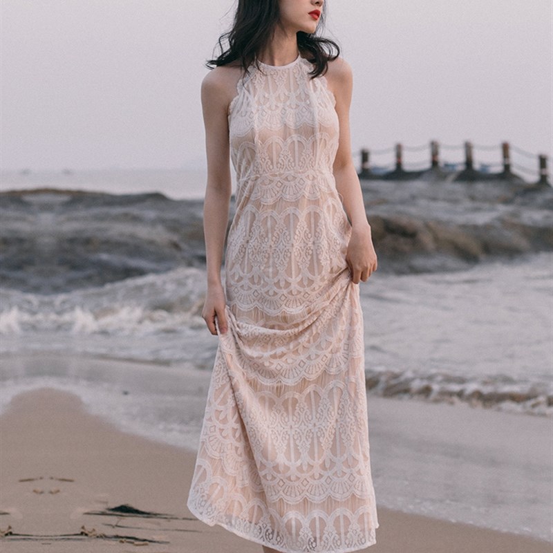 2021新款蕾丝修身连衣裙女夏波西米亚女神泰国沙滩裙海边渡假长裙