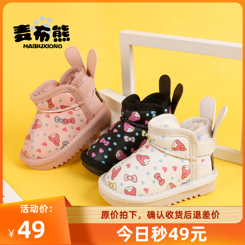 麦布熊女童休闲运动宝宝机能鞋子婴儿软底棉鞋加绒学步男童鞋冬季