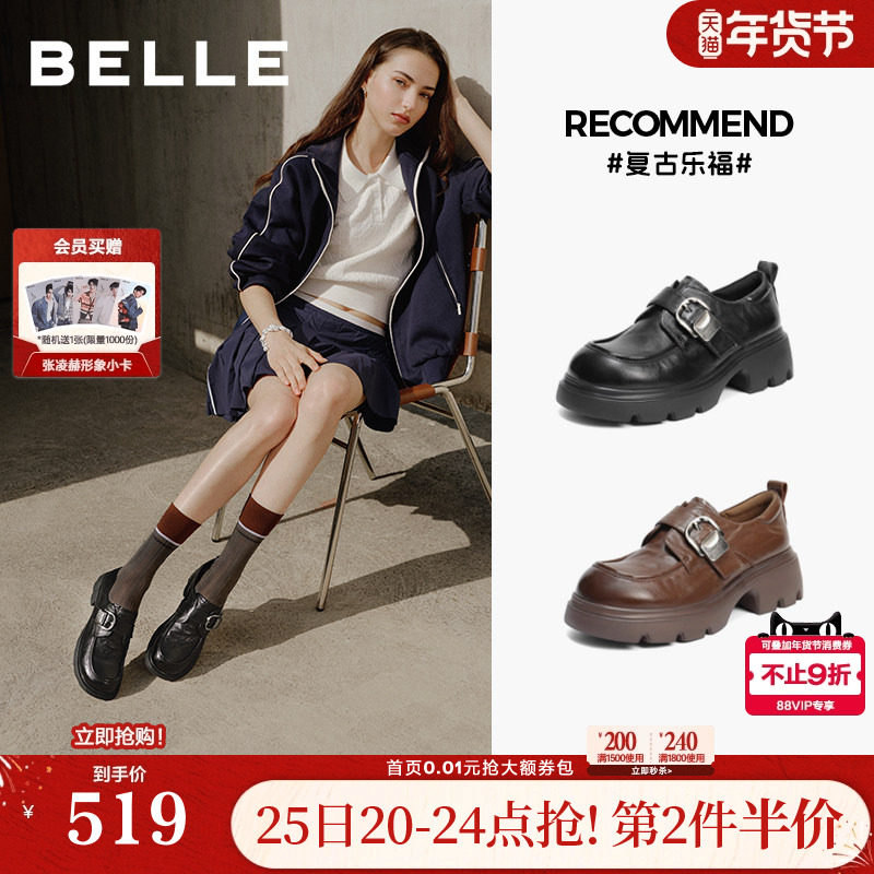百丽复古厚底方扣乐福鞋女2026春季新款黑色小皮鞋单鞋F1E1DAM6