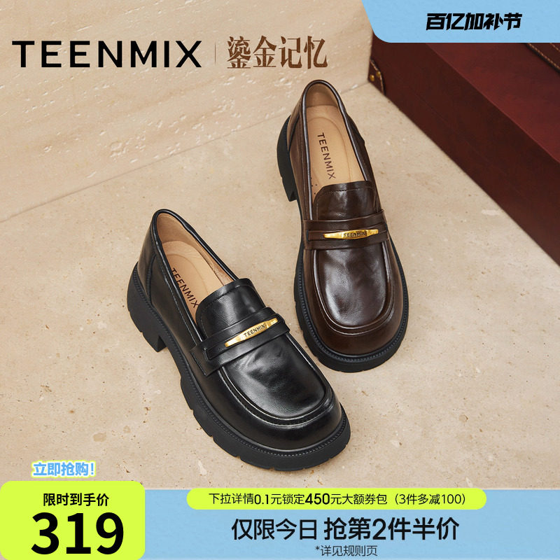 天美意芝士分子厚底休闲英伦乐福鞋复古单鞋女新款一脚蹬小皮鞋子
