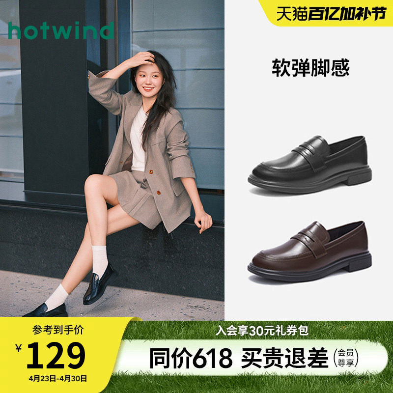 热风乐福鞋女款2026年春季新款软底单鞋复古英伦风黑色小皮鞋女鞋