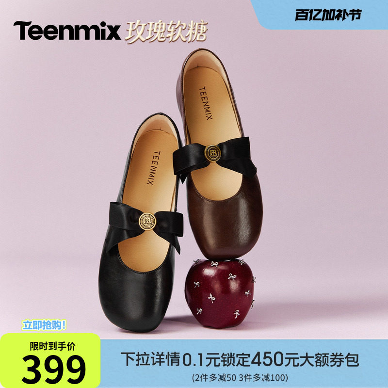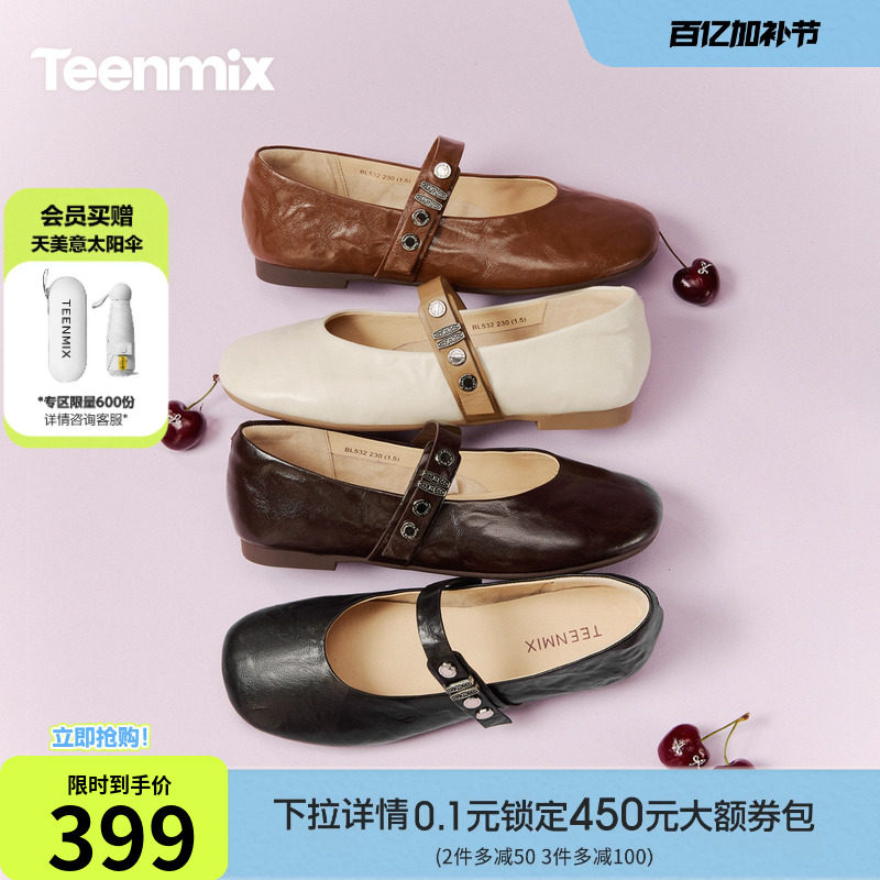 天美意玫瑰软糖复古平底玛丽珍小皮鞋女软底浅口单鞋2026春季新款