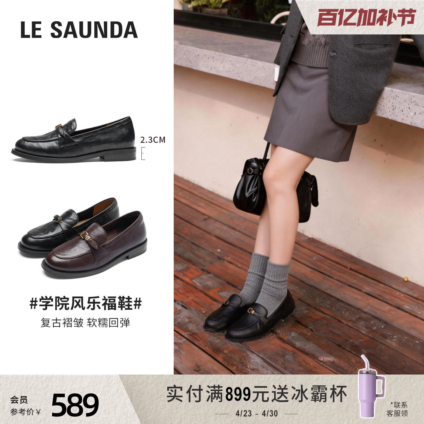 莱尔斯丹2026夏季新款真皮复古黑色百搭通勤乐福小皮鞋女21103