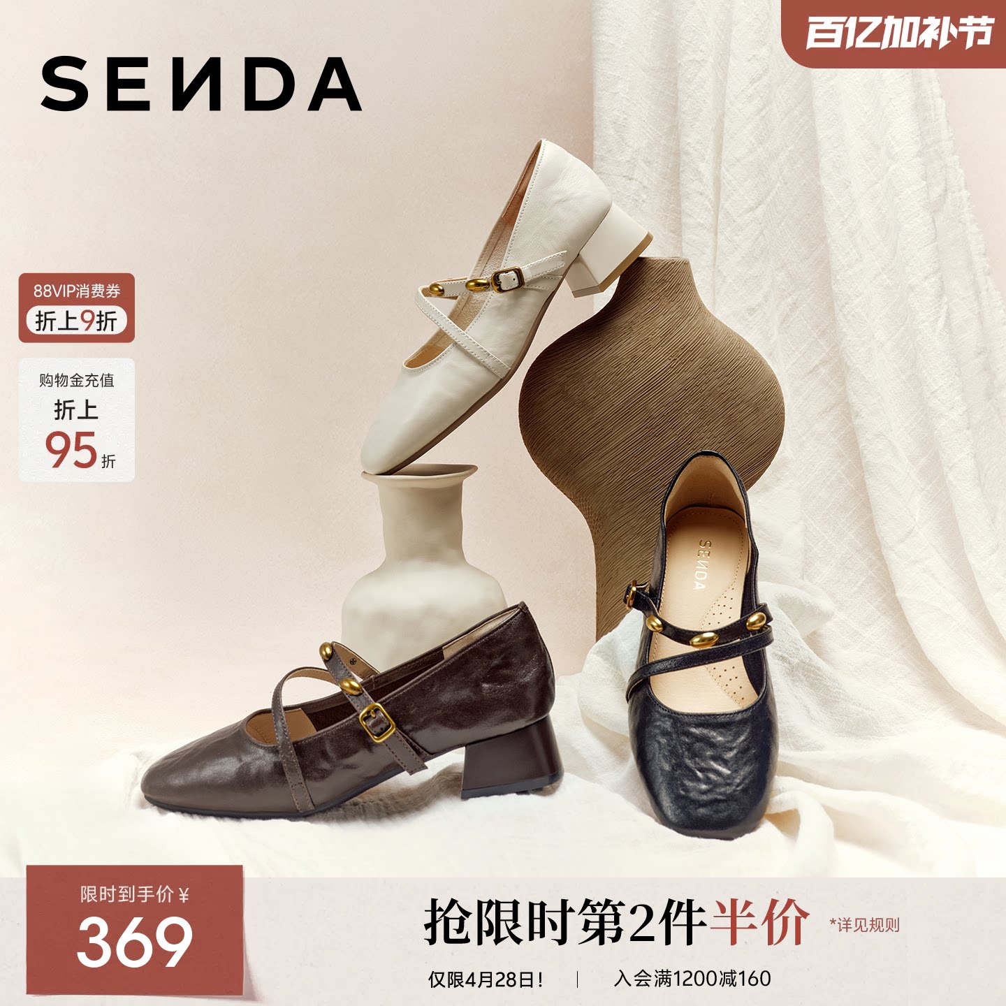 森达玛丽珍女春新款复古法式高跟鞋真皮商场同款羊皮中跟单鞋皮鞋