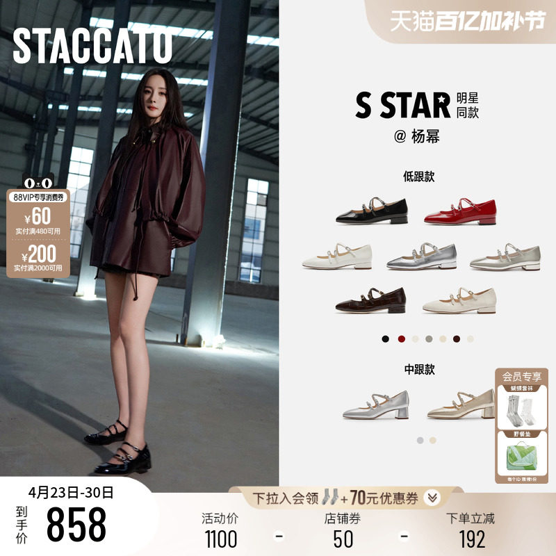 杨幂同款思加图新款爱丽丝玛丽珍鞋复古法式单鞋红色小皮鞋女鞋子