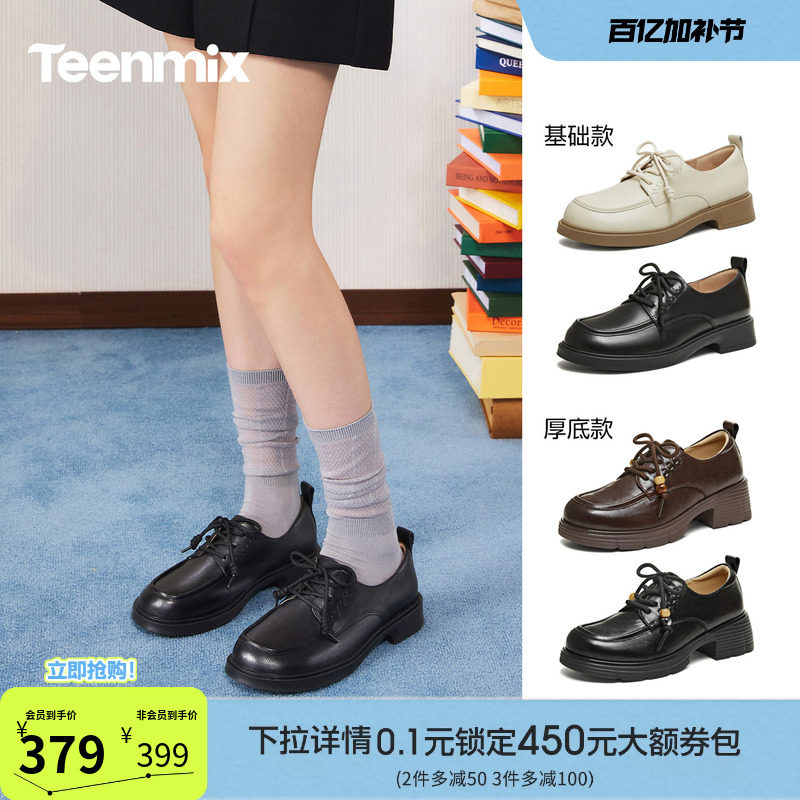 天美意厚底英伦学院风乐福鞋软底小皮鞋女复古单鞋子2026春季新款