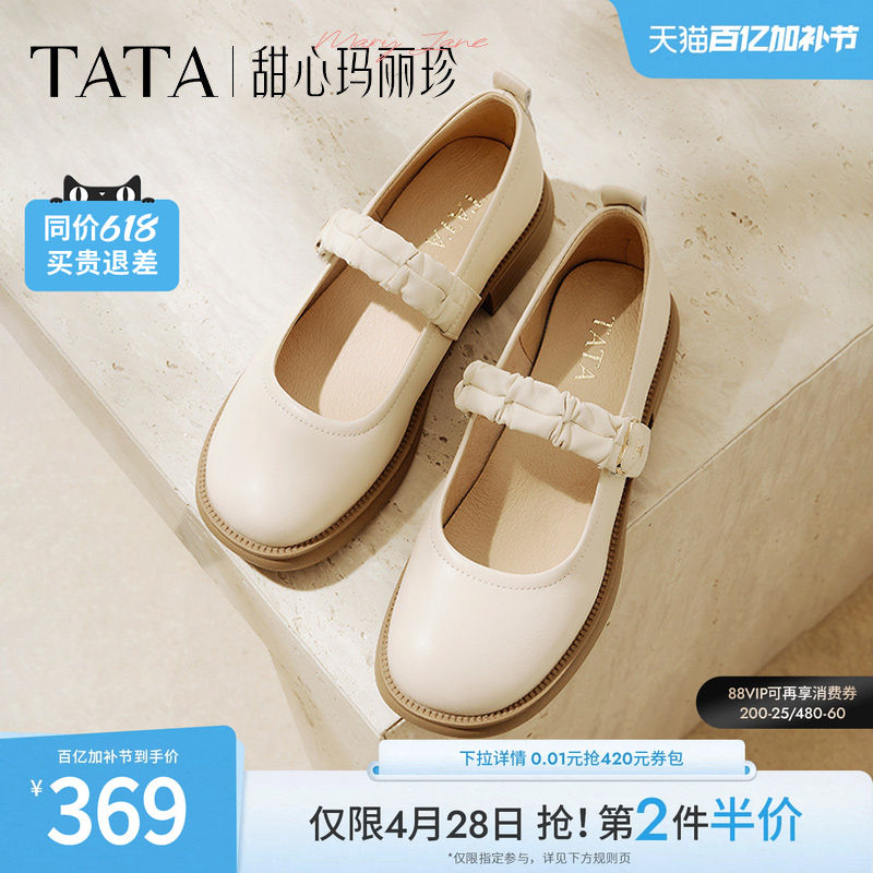 卢昱晓同款TATA他她甜心复古玛丽珍鞋女小皮鞋真皮单鞋7ACF7AQ6