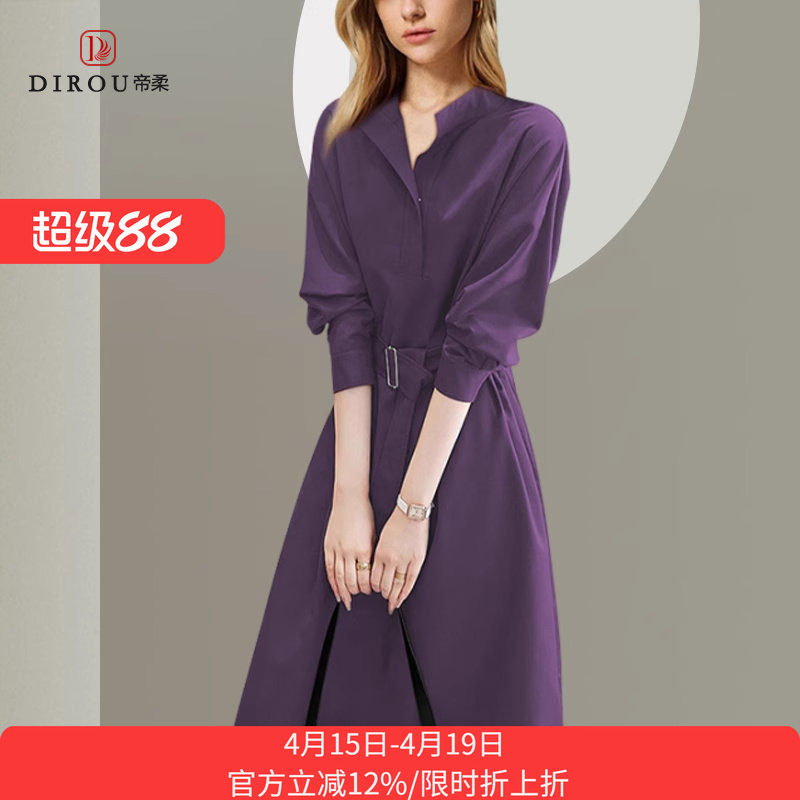 帝柔气质高级感减龄约会连衣裙2026春秋新款紫色收腰长袖衬衫裙子