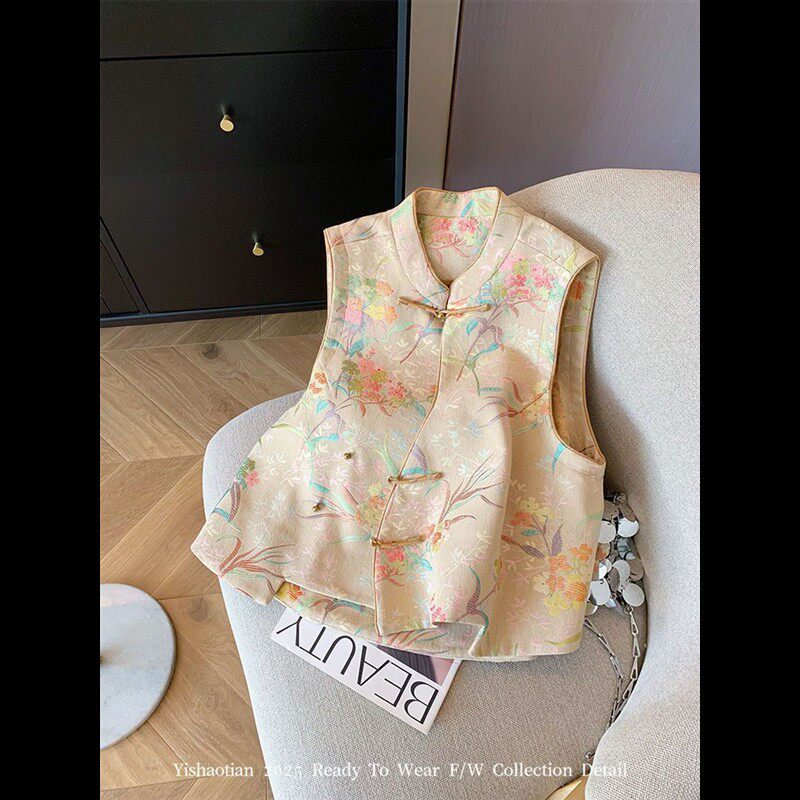 网红爆款国风新中式上衣气质禅意女背心复古国风女装提花马甲女装