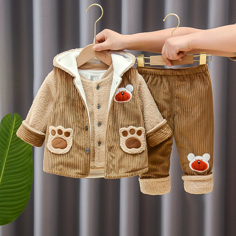 男宝宝加厚棉袄棉服三件套新生婴儿冬季套装02岁灯芯绒面料外出服