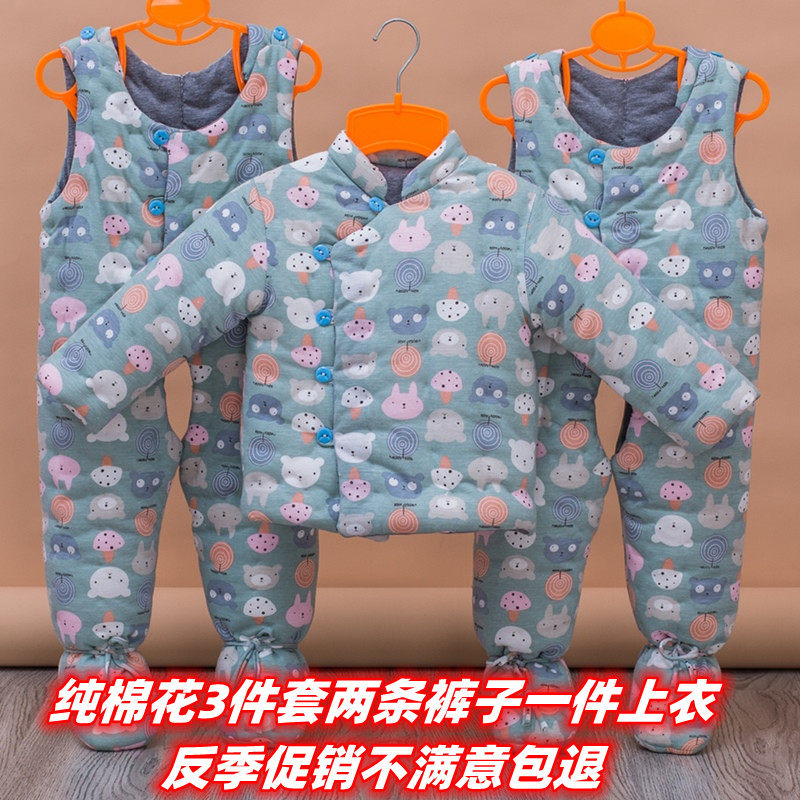 清仓宝宝手工棉衣冬季纯棉花加厚婴儿包脚三件套套装棉袄棉裤保暖