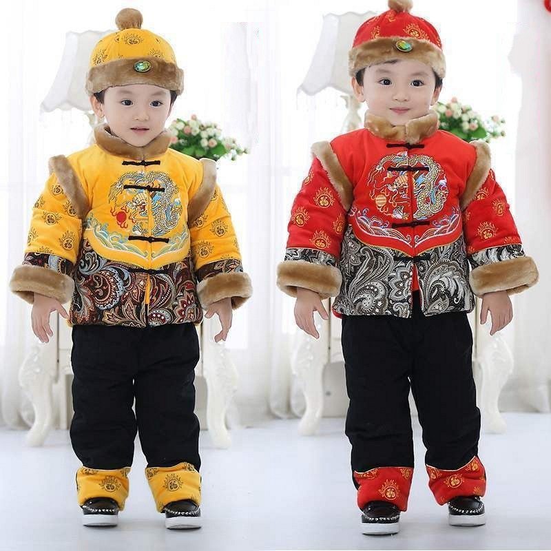 婴儿棉衣三件套装加厚男女宝宝过年唐装儿童拜年服中国风汉服冬季