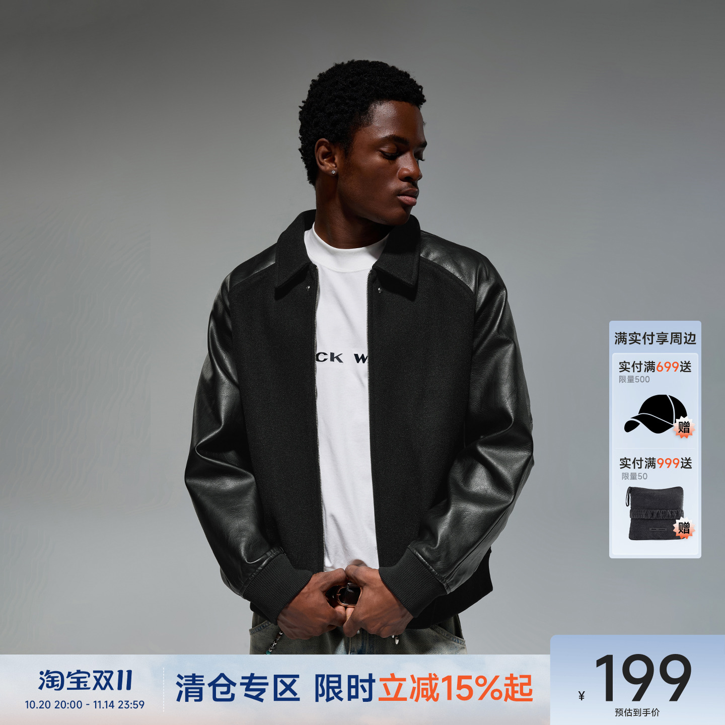G-BLOCK「四炁合一」联名 棒球服拼皮夹克 毛呢拼接上衣外套男潮