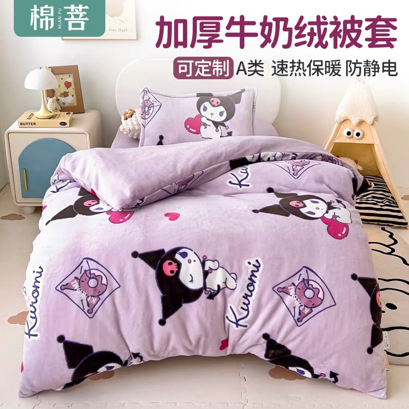 定制儿童牛奶绒被套秋冬加绒宝宝幼儿园午睡法兰绒珊瑚绒被罩单件