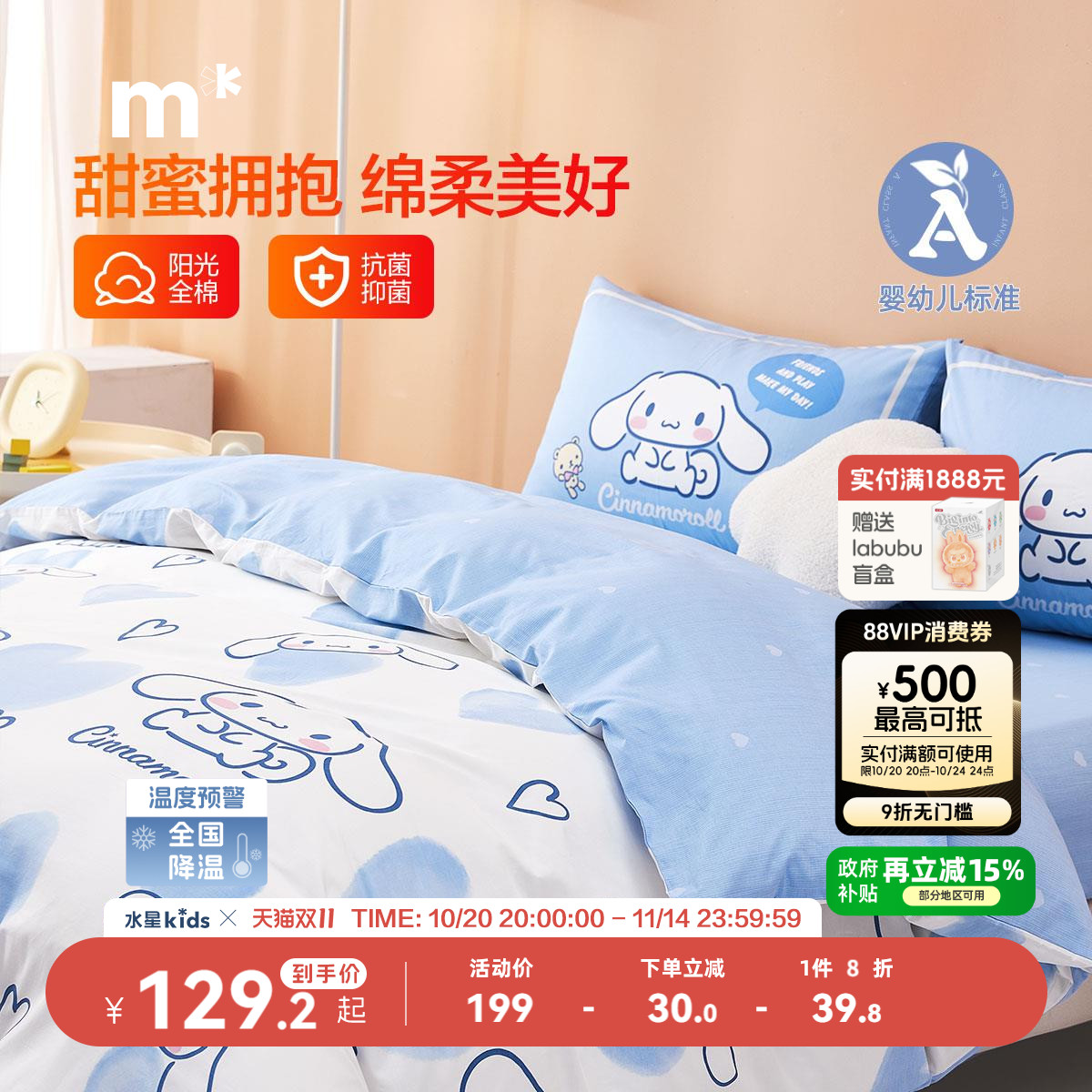 水星儿童心心EG全棉抗菌印花被套卡通被罩单件A类宿舍学生单人