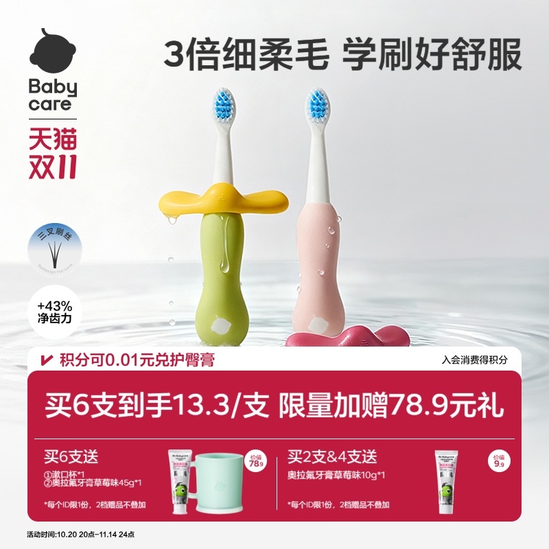 babycare儿童倍净牙刷1-3岁宝宝软毛训练刷牙婴儿幼儿换牙期专用