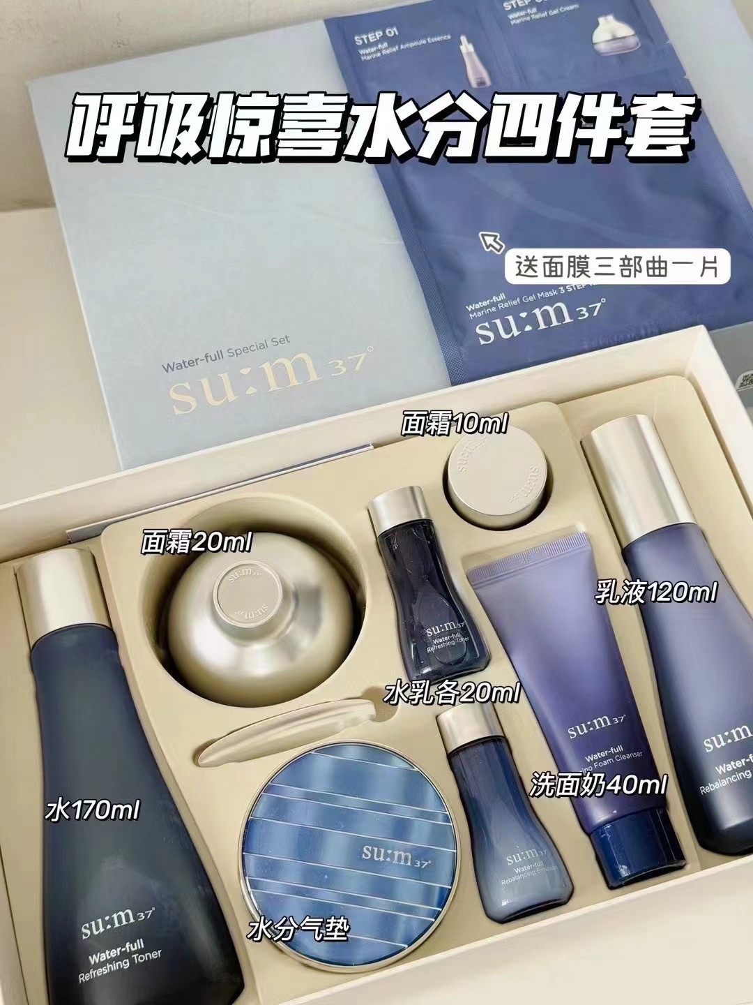 韩国SU:M37呼吸惊喜水分套盒深层补水舒缓保湿抗敏感苏秘精华套装