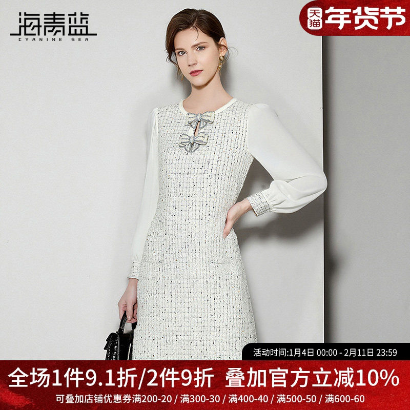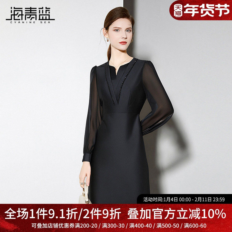 海青蓝 秋冬连衣裙女2025年新款高级时尚气质长袖女装中长裙子