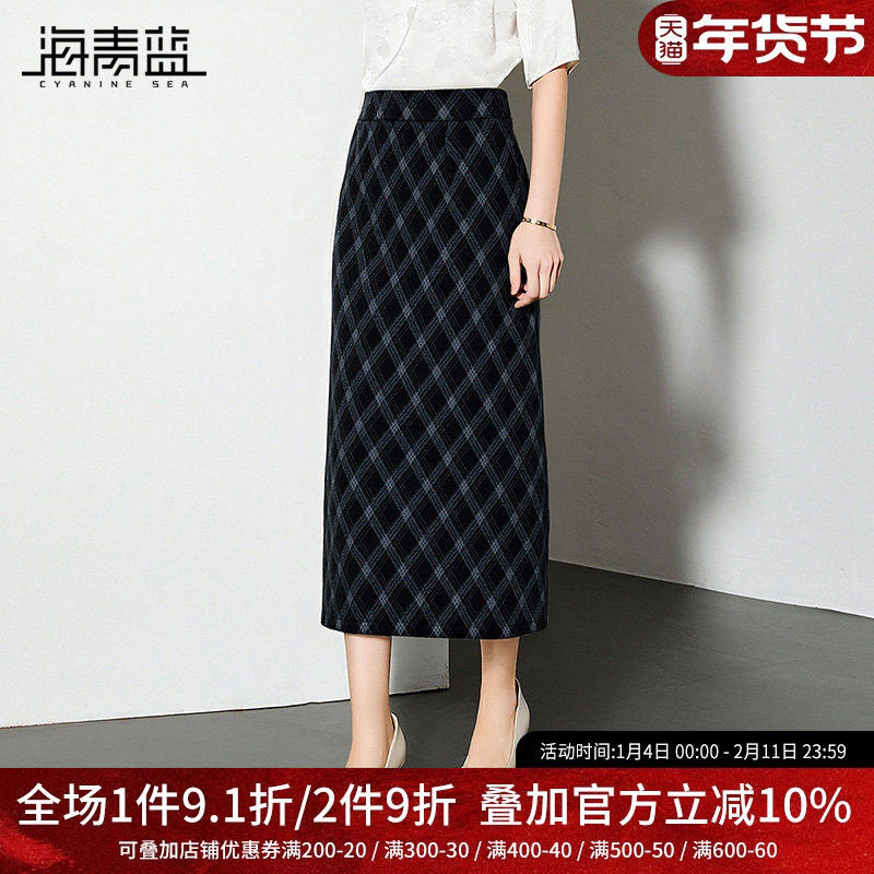海青蓝 半身裙女2025新款冬好看时尚气质高级中长款女装格子半裙