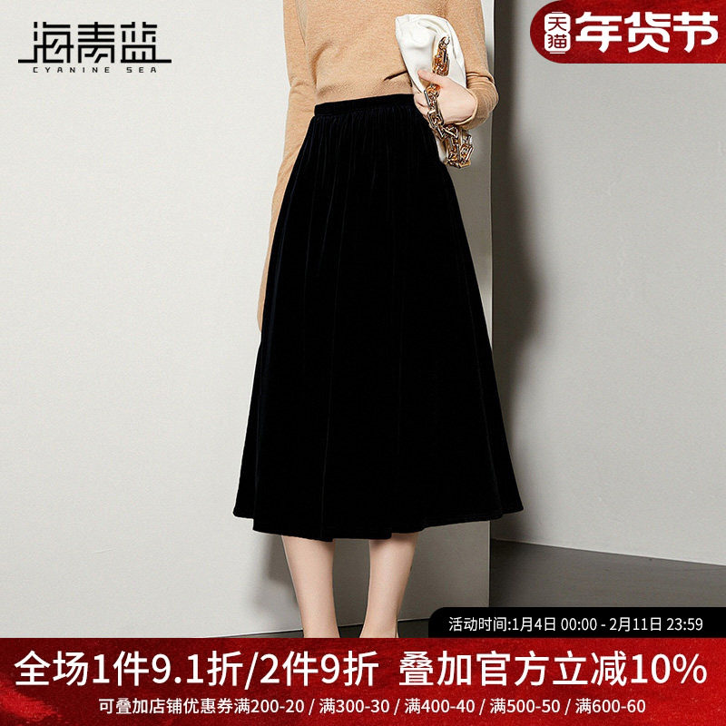 海青蓝 丝绒半身裙女2025新款冬女装高级好看时尚气质中长款半裙