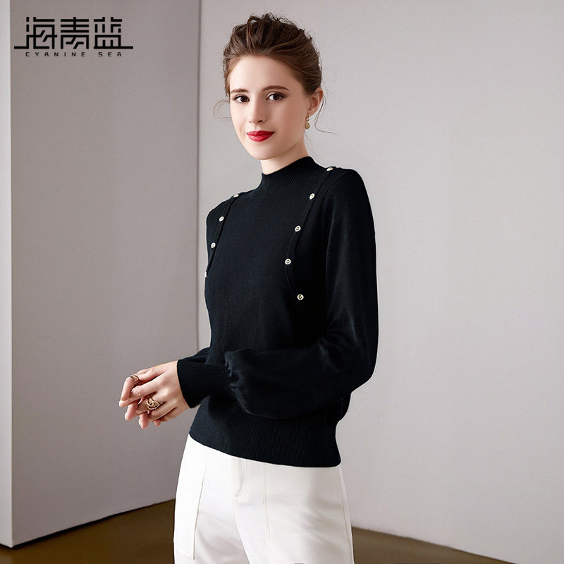 海青蓝 半高领针织衫2025年新款秋冬内搭打底长袖高级女装上衣