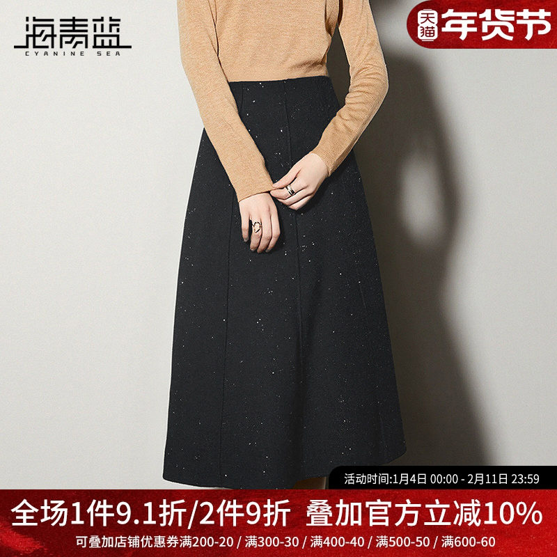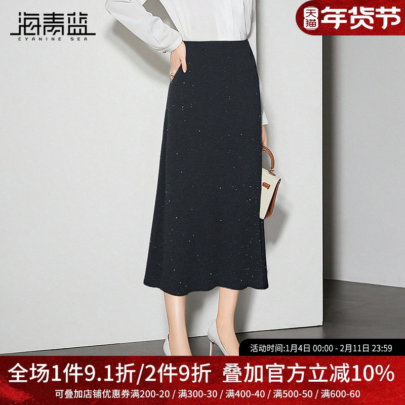 海青蓝 半身裙女2025新款冬高级漂亮休闲设计感纯色女装亮片半裙