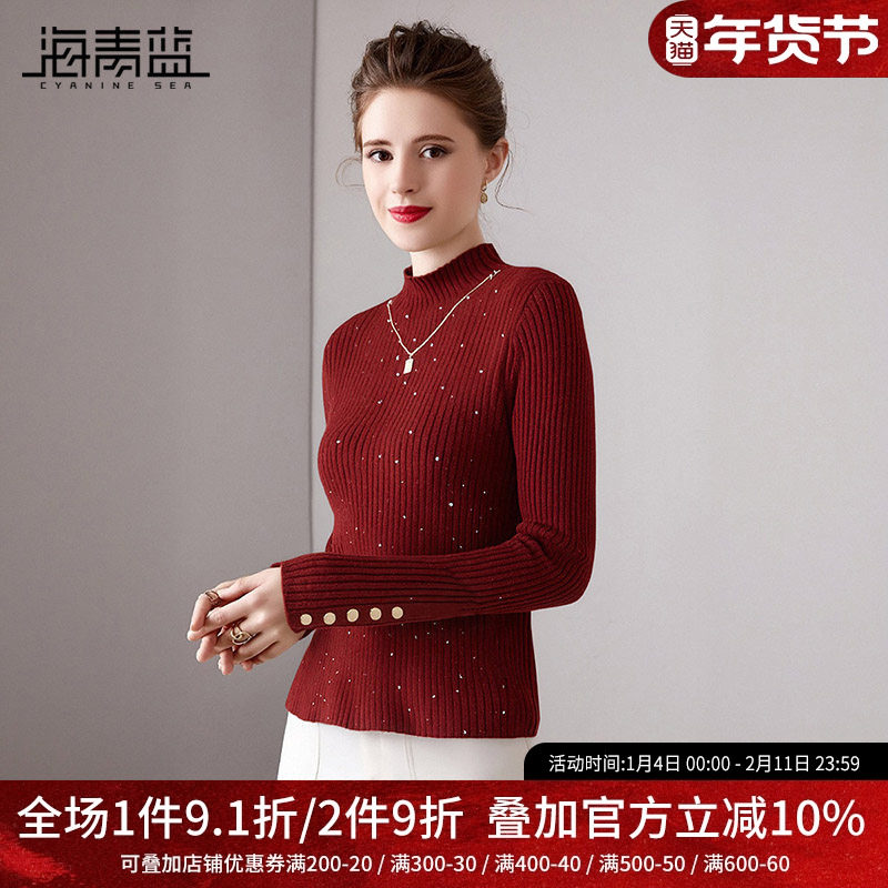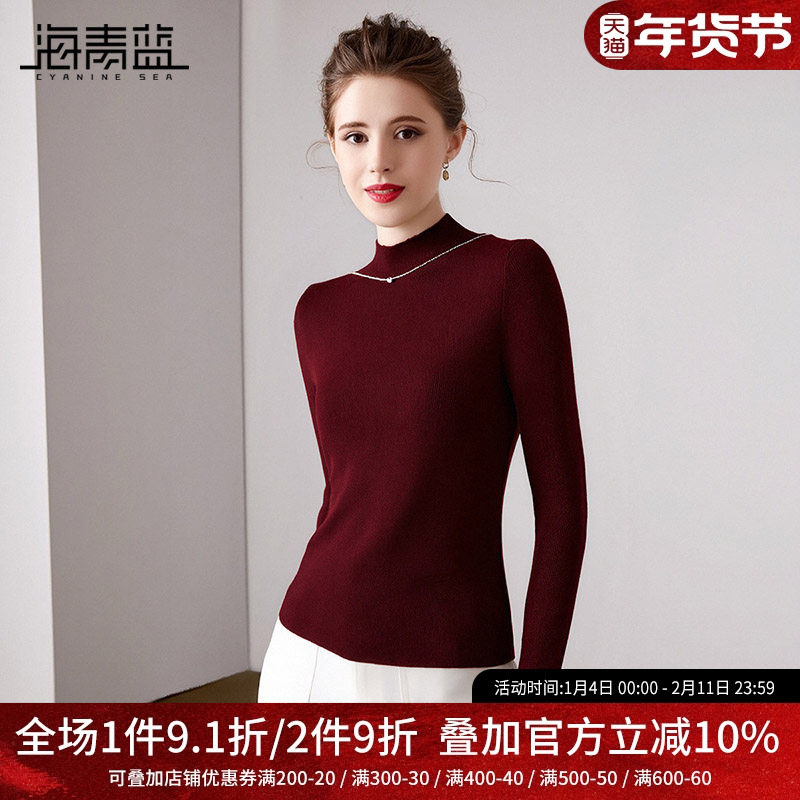 海青蓝 红色打底衣女内搭高级感2025年新款时尚女装半高领针织衫